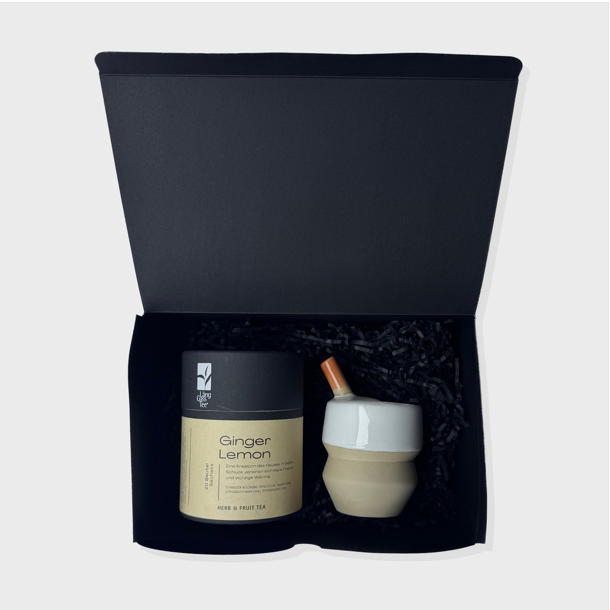 Gönne dir oder liebe Personen in deinem Leben eine kleine Auszeit: Ein eleganter Schnabelbecher trifft auf eine fein abgestimmte Teemischung von Länggass-Tee. Wähle zwischen der zarten Blütenmischung Berner Rosen oder dem belebenden Ginger Lemon. Ob zu Hause oder unterwegs – diese Sets vereinen Genuss, Ästhetik und Wohlgefühl in einem liebevoll gestalteten Präsent.