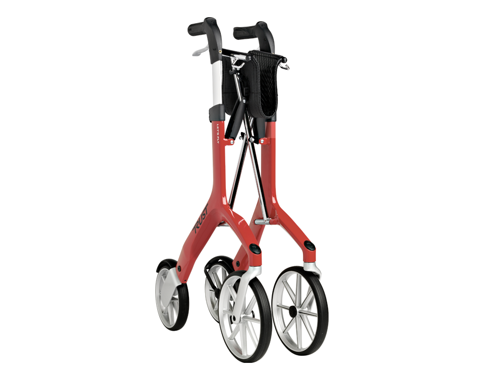 Der Let’s Fly von TrustCare gehört zu den elegantesten Rollatoren seiner Art. Sein mehrfach ausgezeichnetes Design verbindet Leichtigkeit, Stabilität und Ästhetik in einer Form, die Vertrauen schafft. Der Rahmen aus Aluminium ist stabil und dennoch erstaunlich leicht – ein Begleiter, der Bewegung mühelos macht, ob im Alltag oder beim Spaziergang im Freien.