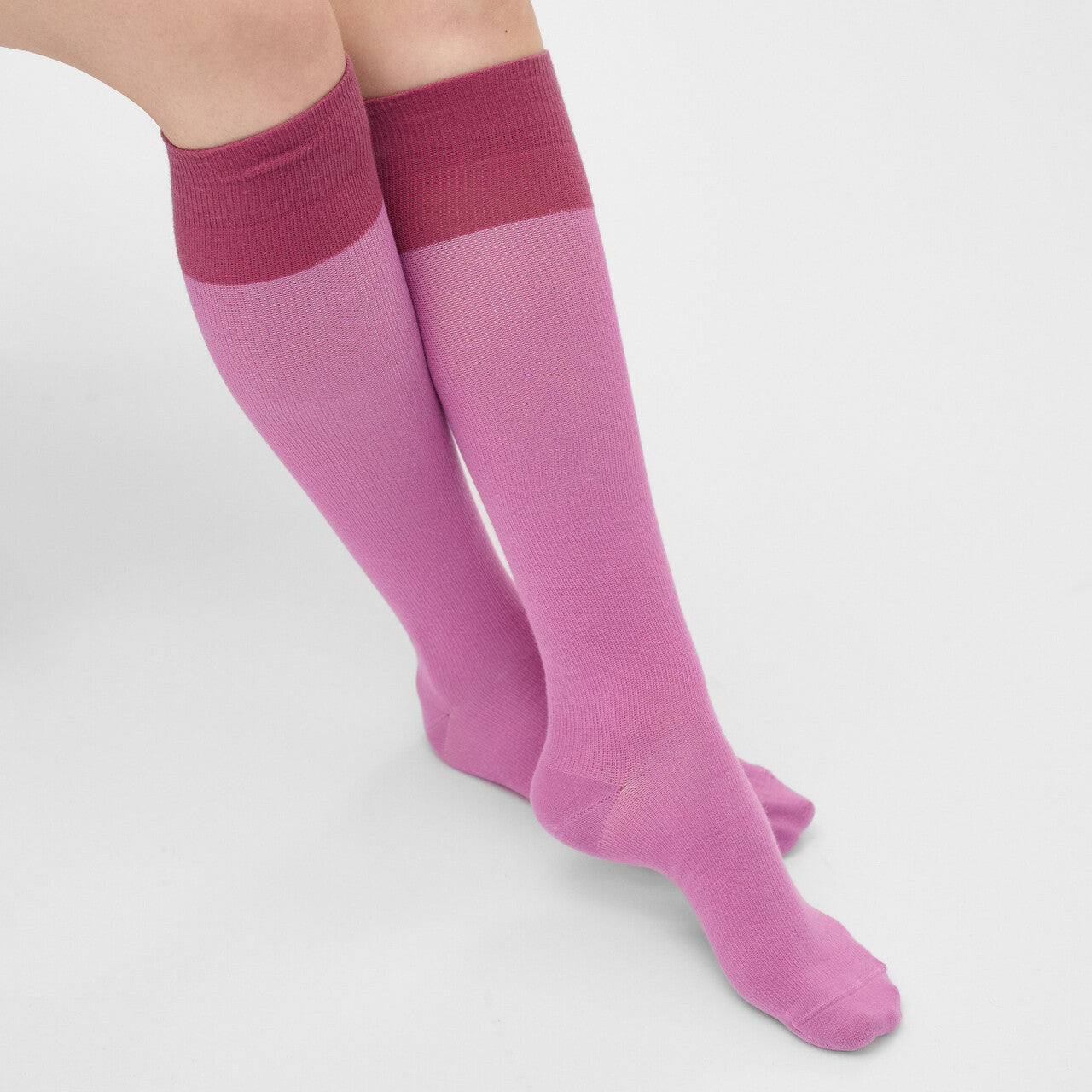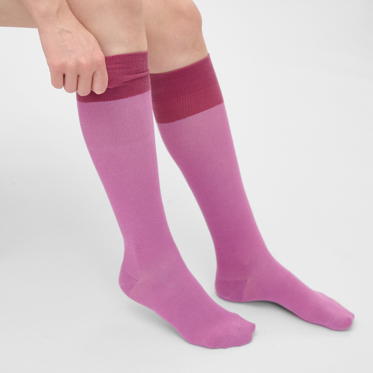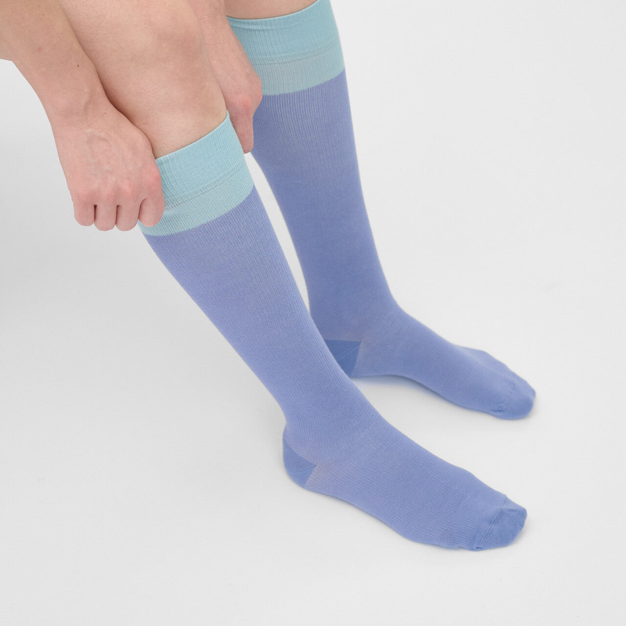 Gefertigt aus 63 % Baumwolle, 33 % Polyamid und 4 % Elasthan umhüllen die Kompressionssocken das Bein weich und atmungsaktiv. Die hochwertige Materialmischung sorgt für eine angenehme Passform, auch bei empfindlicher Haut, und bietet gleichzeitig die nötige Elastizität für eine gleichmässige, zuverlässige Kompression.